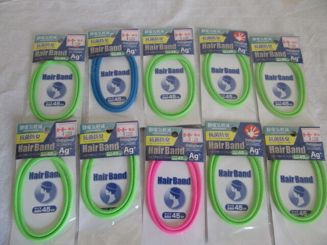 - ★抗菌防臭 静電気軽減 HairBand スポーツ用ヘアバンド サイズ直径約45cm 10個セット★