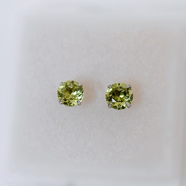 - 一粒石 4mm 8月誕生石 橄欖石 ペリドット 4本爪 シルバー925 ピアス