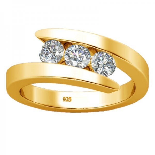 【高級3石ゴールドモアッサナイトリング】証明書付き、シルバー925、婚約指輪