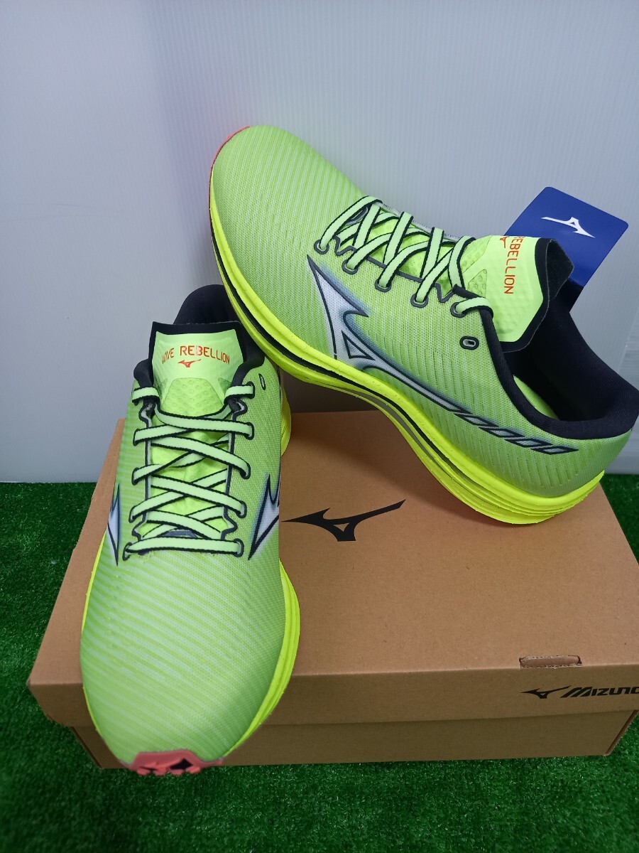> 未使用箱付 Mizuno/ミズノ WAVE REBELLION/ウエーブリベリオン ランニングシューズ J1GC2117 ライム×ホワイト×ピンク(02)