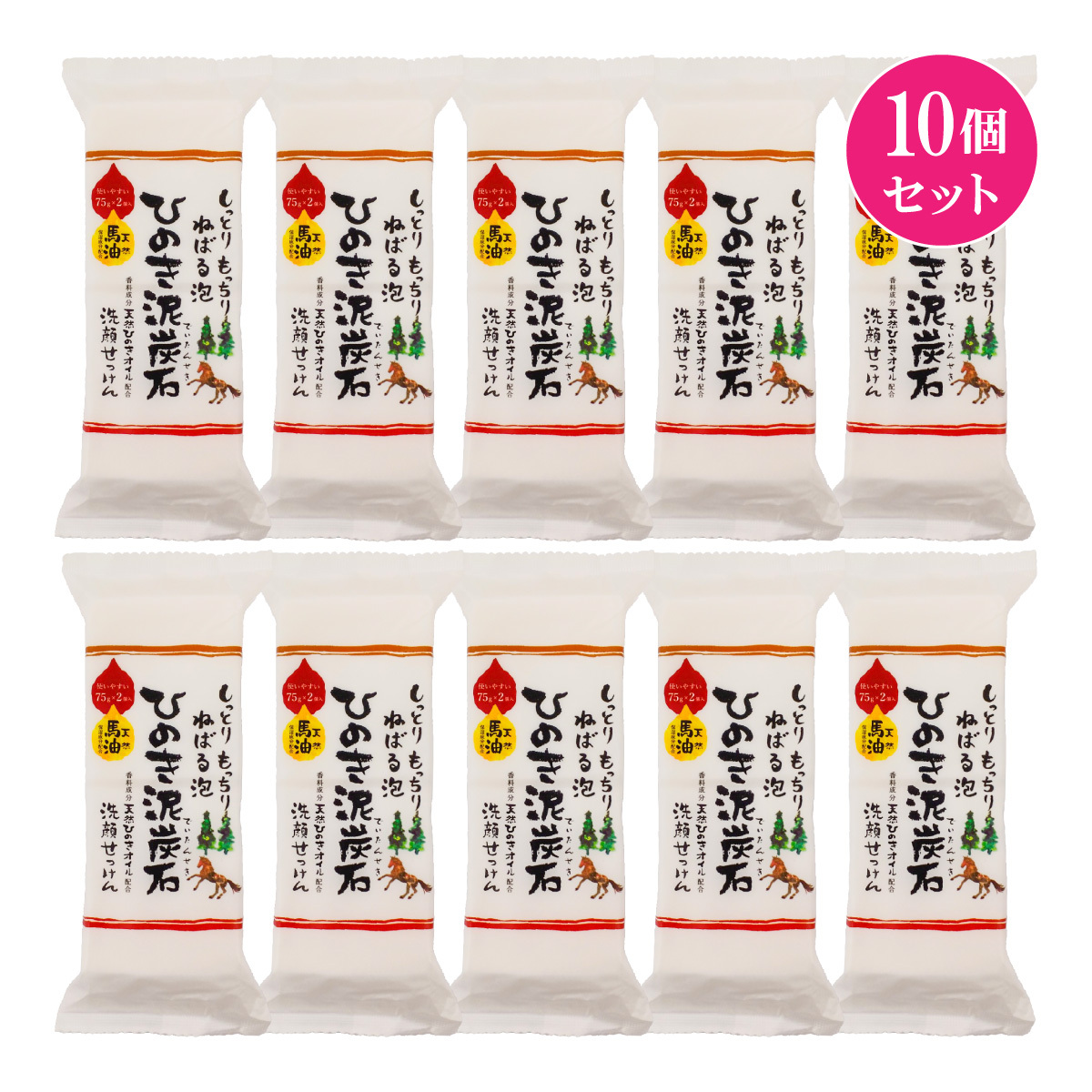 - ひのき泥炭石 洗顔せっけん うるおいタイプ 150g(75g×2個)×10個セット ペリカン石鹸【正規販売店】【送料無料】