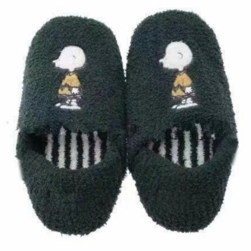 - 送料無料★新品 スヌーピー もこもこ かかとが脱げない スリッパ ルームシューズ 可愛い 室内スリッパ ★緑