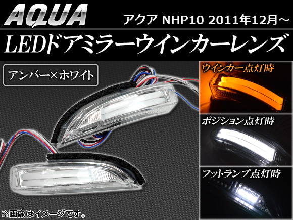 > LEDドアミラーウインカーレンズ トヨタ アクア NHP10 2011年12月~ アンバー/ホワイト点灯 入数:1セット(左右) AP-LEDWIN-T33