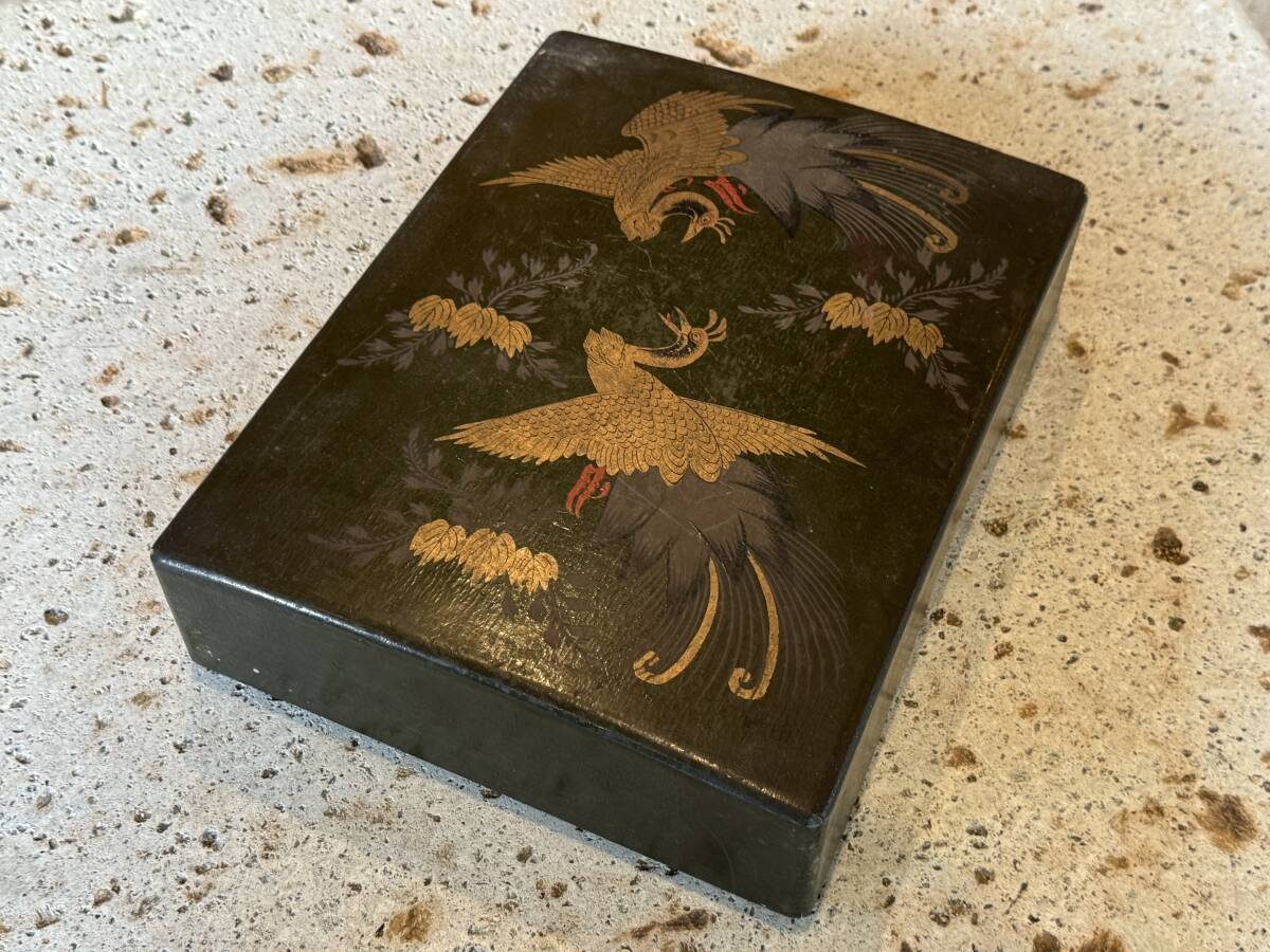 - 鳳凰桐深草色手許箱(木箱 文庫 文筥 文箱 小物入れ)