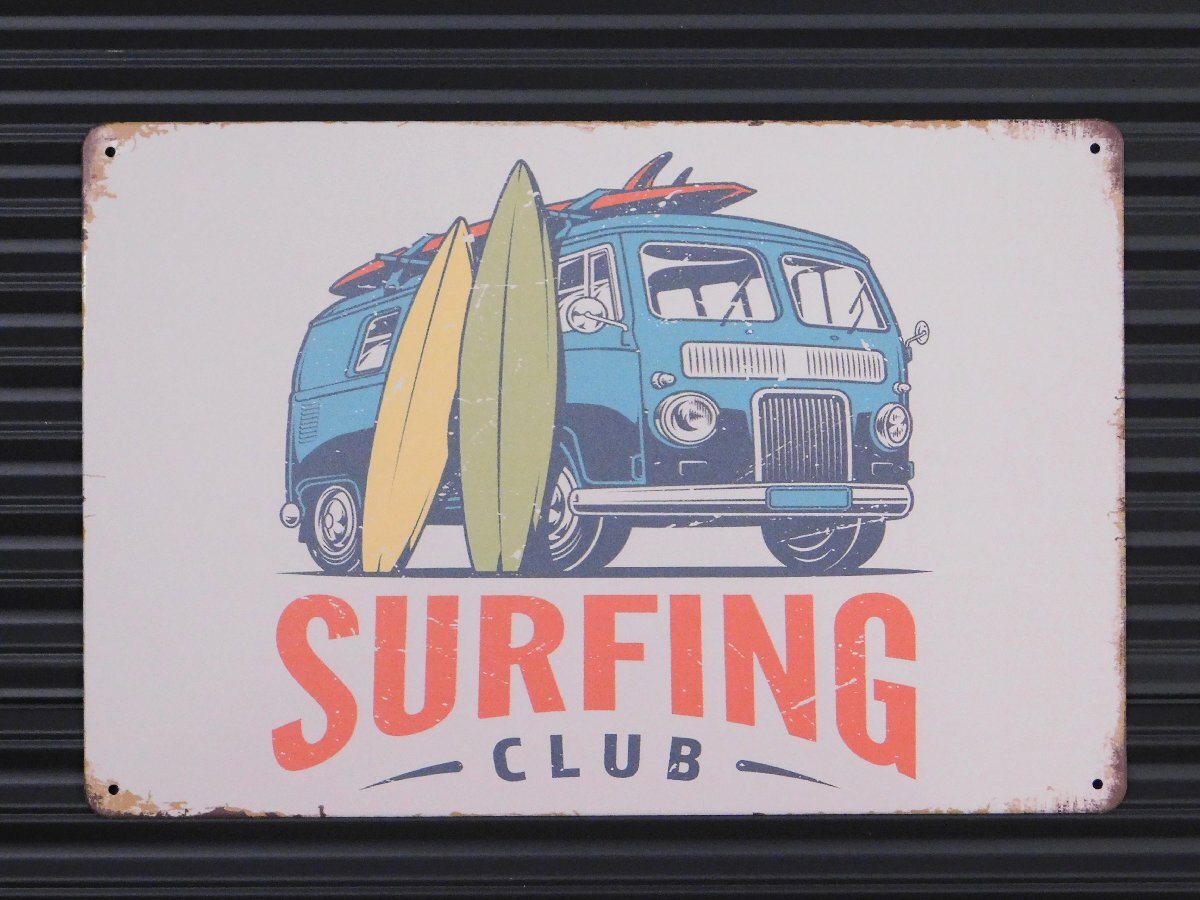 > ◆送料\185◆【SURFING CLUB・ワーゲンバス】※《アンティークメタルプレート / 200×300mm》 アメリカン雑貨 ブリキ看板