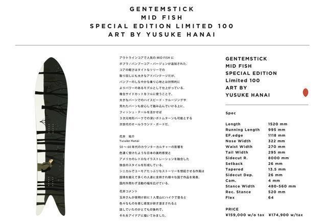 > 限定100本 新品★GENTENSTICK MID FISH 152cm ゲンテンスティック スペシャルエディション リミテッド100★花井祐介 パウダー 専用カバー