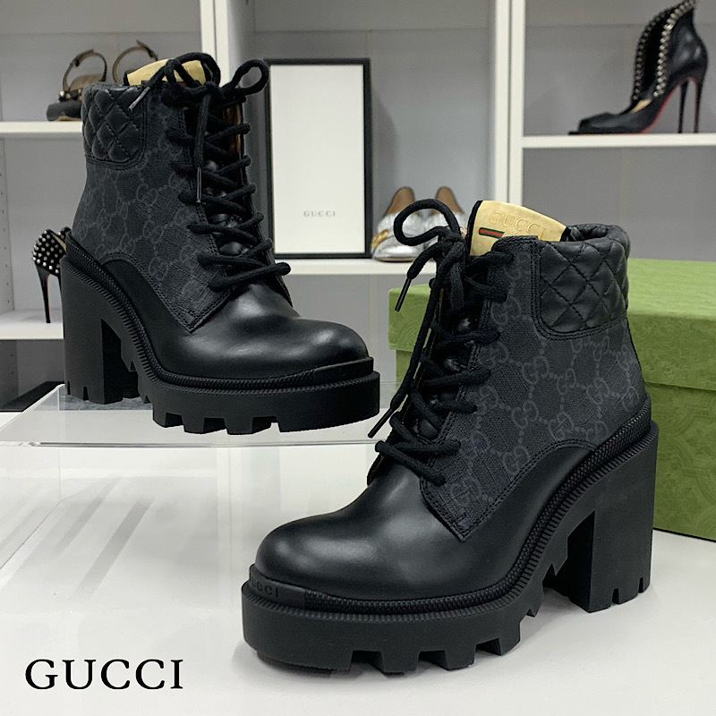 - M10775 グッチ レザー GGスプリーム ショートブーツ ブラック