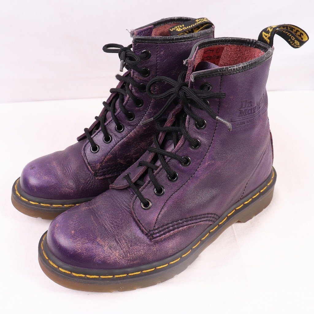 - ドクターマーチン UK6.5/25.0cm-25.5cm/8ホール 1460 紫 パープル ブーツ レディース レザー dr.martens 中古 古着 dh4136