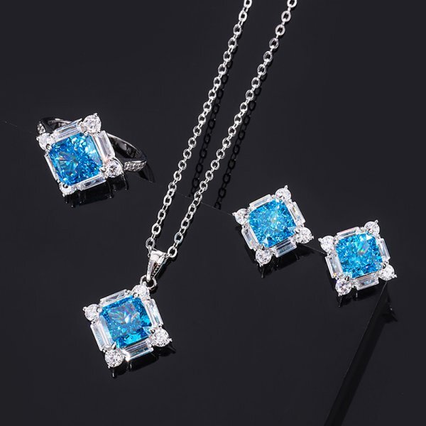 アクアマリンジュエリーセット(ネックレス、リング、ピアス)、 925スターリングシルバー