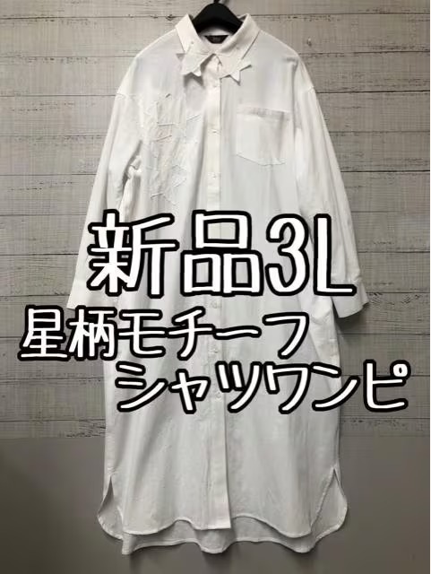 - 新品☆3L♪白系♪星柄モチーフのロングシャツワンピース♪綿100%♪☆k185