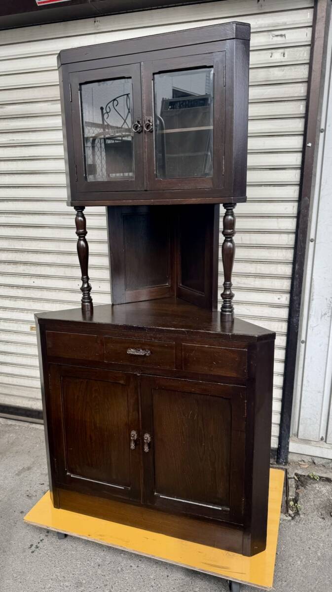 - ☆アンティーク 三角コーナーキャビネット オープンコーナー 飾り棚 ショーケース 分割 横浜