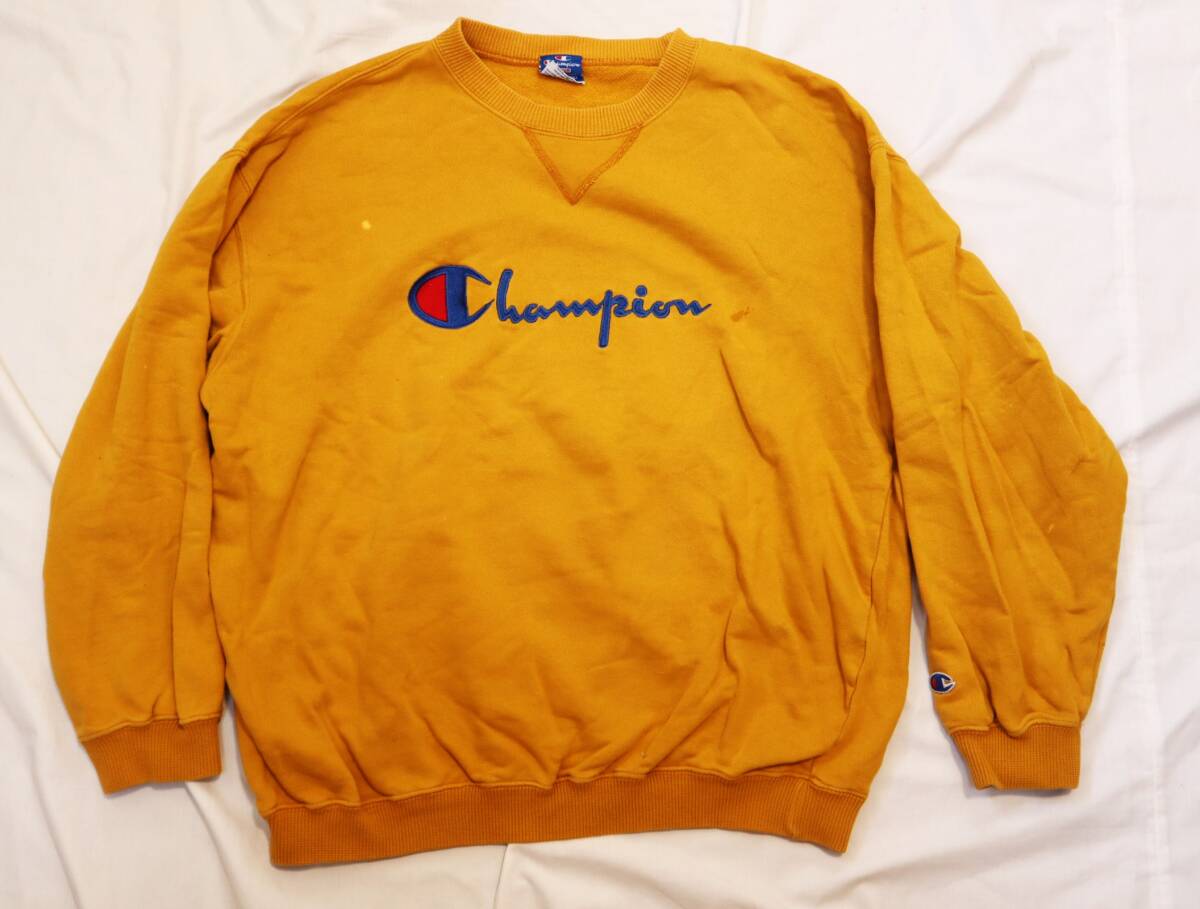 - チャンピオン ジャンボロゴ刺繍 からし マスタード ガゼット付き スエット M