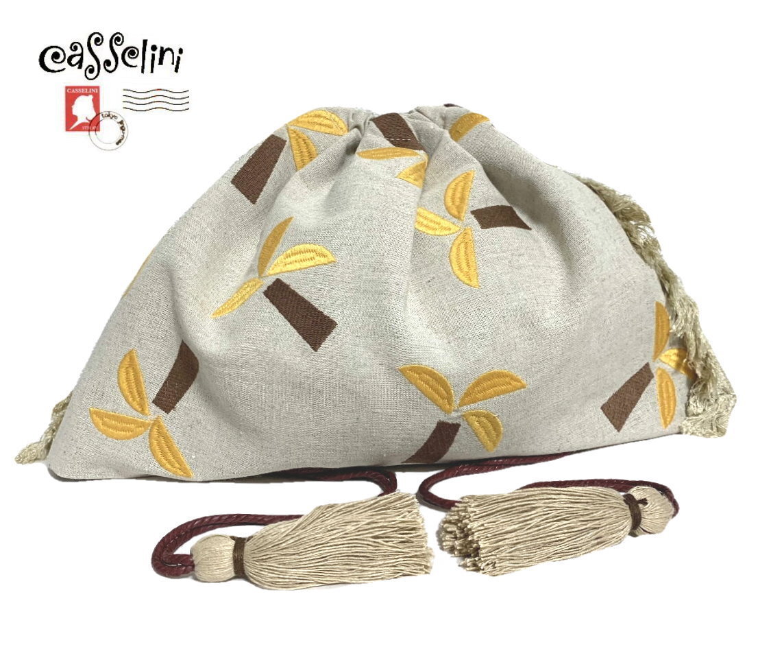 - 送料185円 キャセリーニ Casselini モチーフ刺繍巾着 サンドベージュ