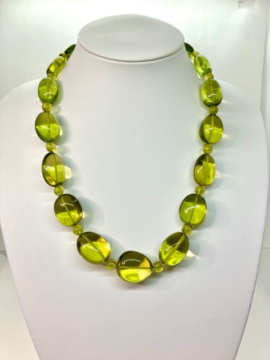 - 【新品】リトアニア産グリーン琥珀ネックレス*ミックス*コハク*アンバー*こはく*シンプル*グラデーション