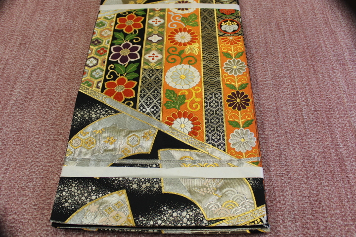 - きもの今昔7688 西陣織袋帯 正絹黒地錦織西陣最高クラス 金銀を駆使し綺羅びゃかな色彩の最高傑作 未使用