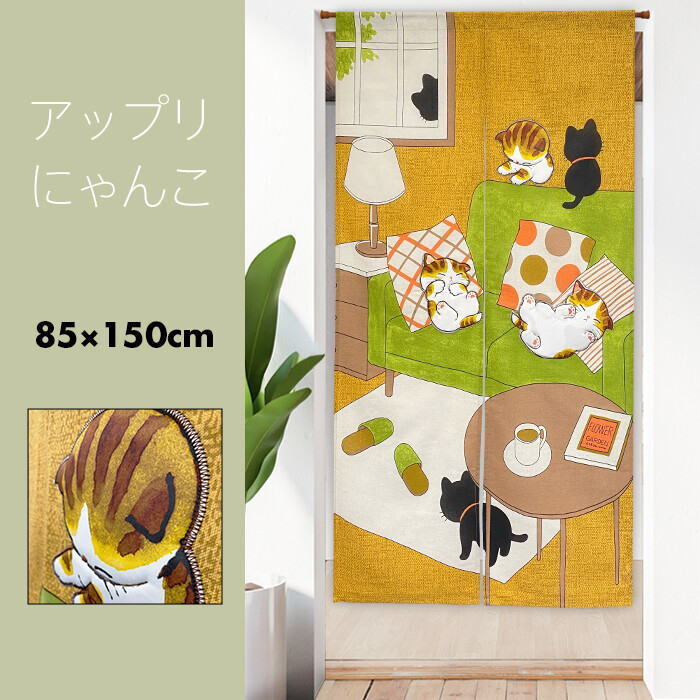 - 【アップリケのれん】のれんアップリにゃんこ幅85x1丈150cm-niil