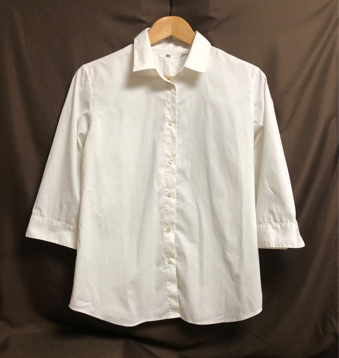 - UNIQLO 7分袖白いシャツ★爽やかな トップス XL ビシネス カジュアル ドレスシャツ