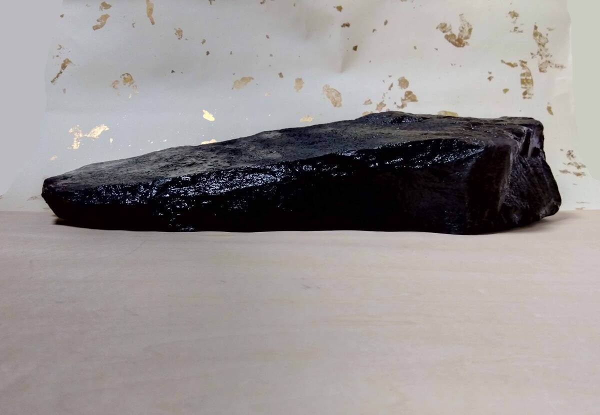 - 水石ウブ石 瀬田川梨地真黒そげ石 「土坡形石」幅 580 x 高さ 130 x 奥行 170mm 重さ 約18㎏