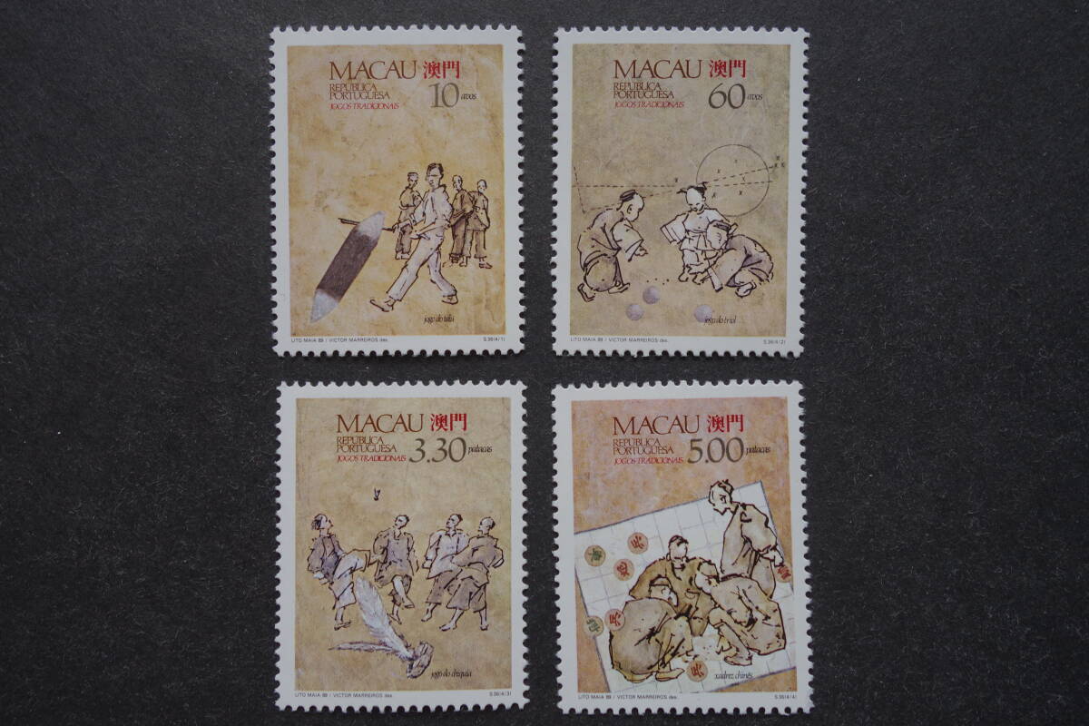 - 外国切手: マカオ切手 「伝統的な遊び」 4種完 未使用