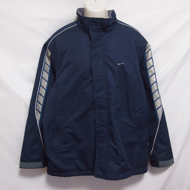 - 古着 メンズL NIKE/ナイキ 裏起毛 中綿 ハーフコート 防寒 観戦 移動 フルジップ ネイビー 112210
