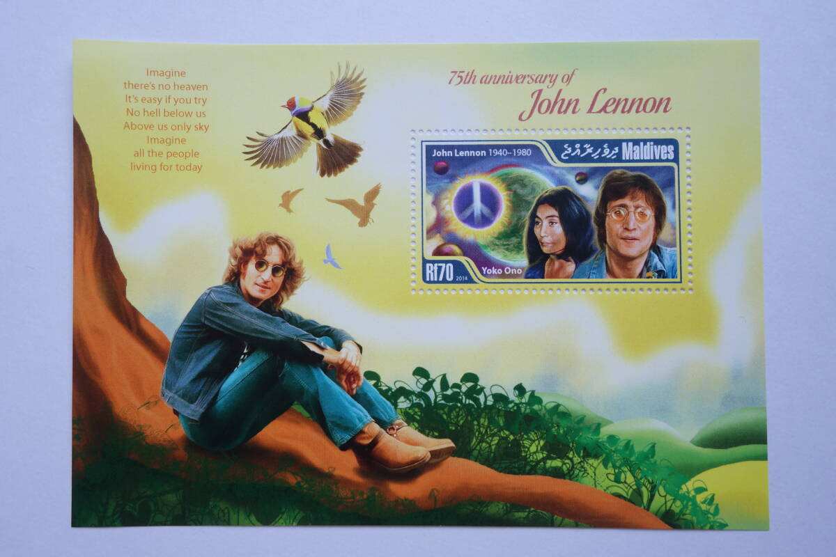 - 外国切手:モルディブ切手 「ジョン・レノン誕生75年」小型シート 未使用