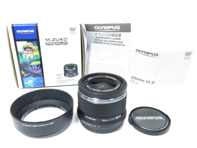 - 【 美品 】OLYMPUS M.ZUIKO DIGITAL 25mm F1.8 ブラック フード付 レンズ オリンパス [管OOL4336]