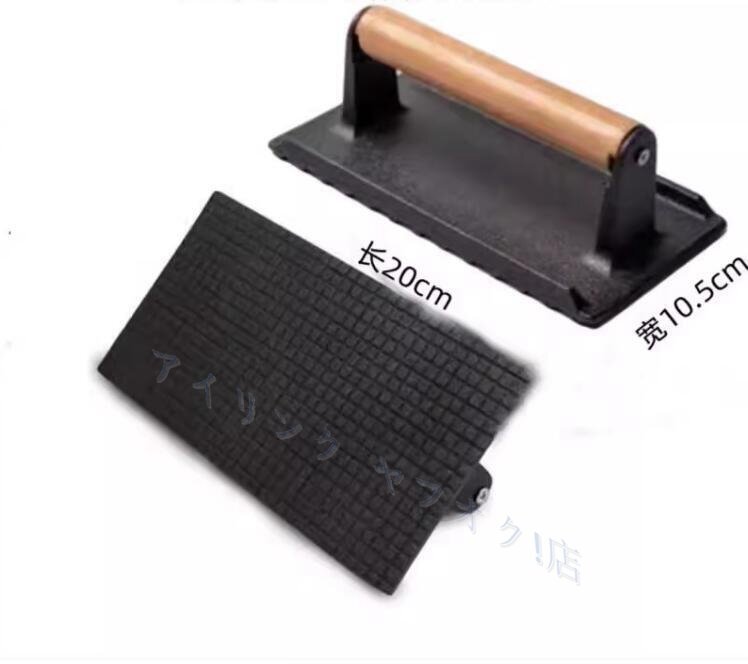 > ☆新品キャストアイアングリルプレス ベーコンハンバーガーサンドイッチグリドルパニーニミート ウッドハンドルグリルアクセサリー付き