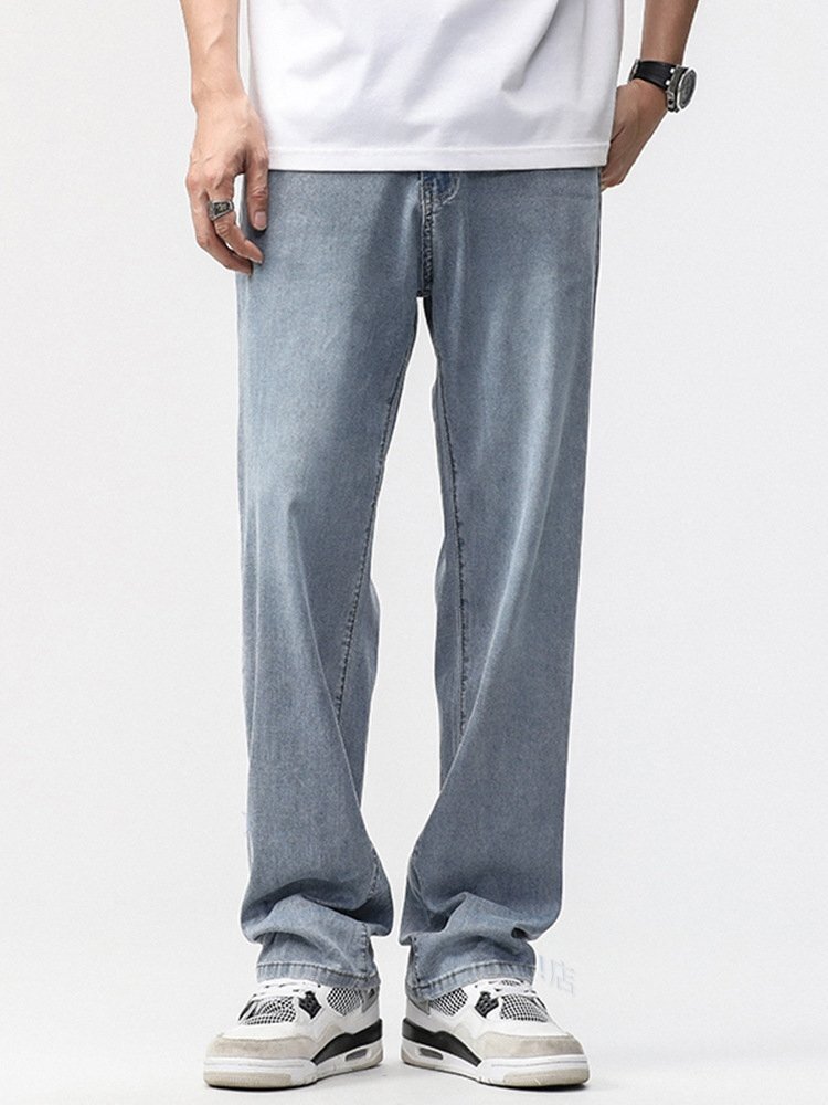 - 新品☆上質 ジーンズ ジーパン メンズデニムパンツ 春夏薄め ライト 涼しい ストレッチ入り ストレートズボンブルー 2X