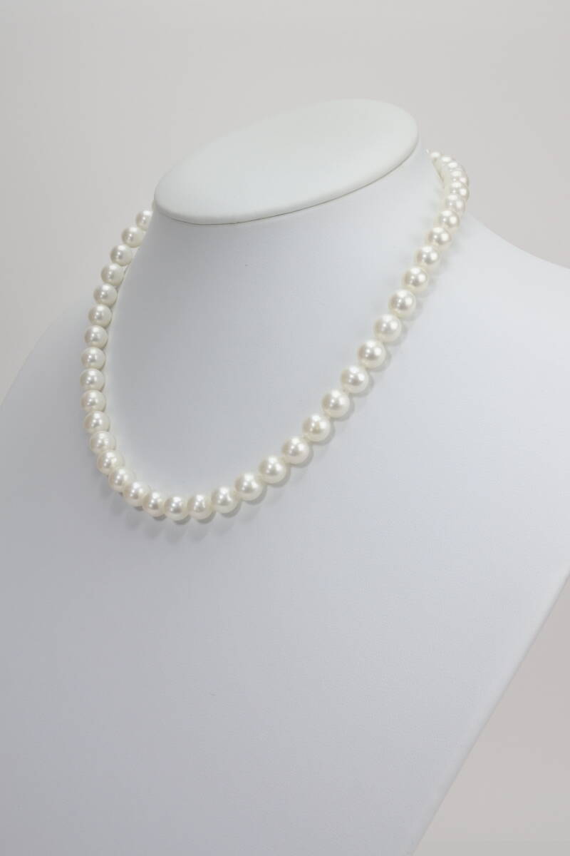 > 日本製* 銀 アコヤ真珠 ネックレス玉径7.5~8.0mm 長さ:43cm 重さ:36g silver 刻印 未使用保管品