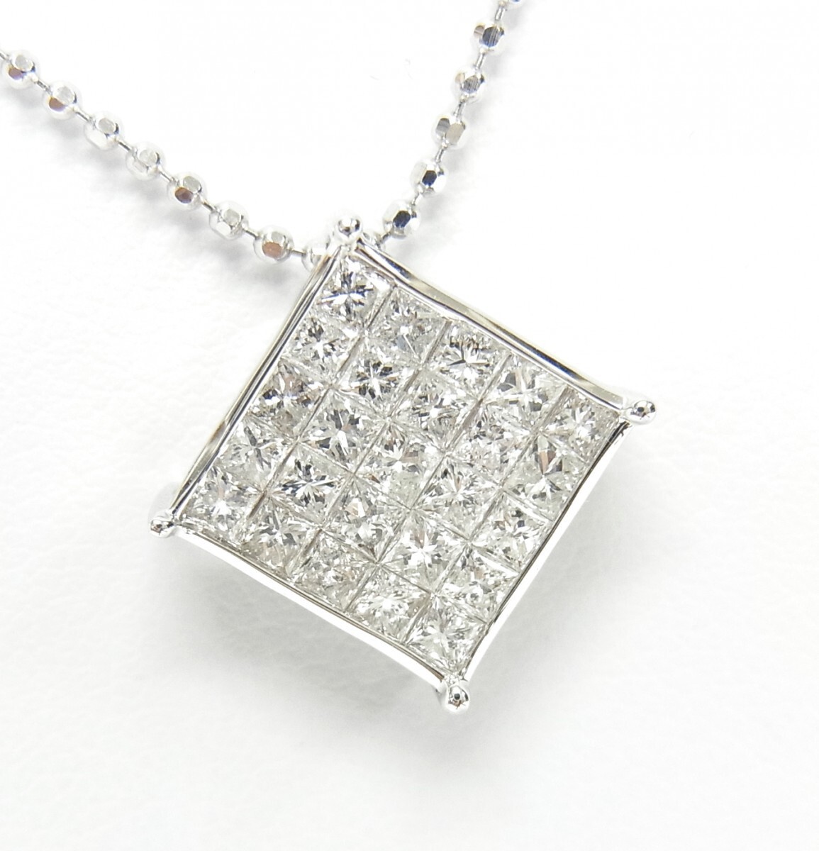 > 合計1ct 角型天然ダイヤモンド ミステリーセット 18金ホワイトペンダントネックレス 卸価格 商品動画 送料込