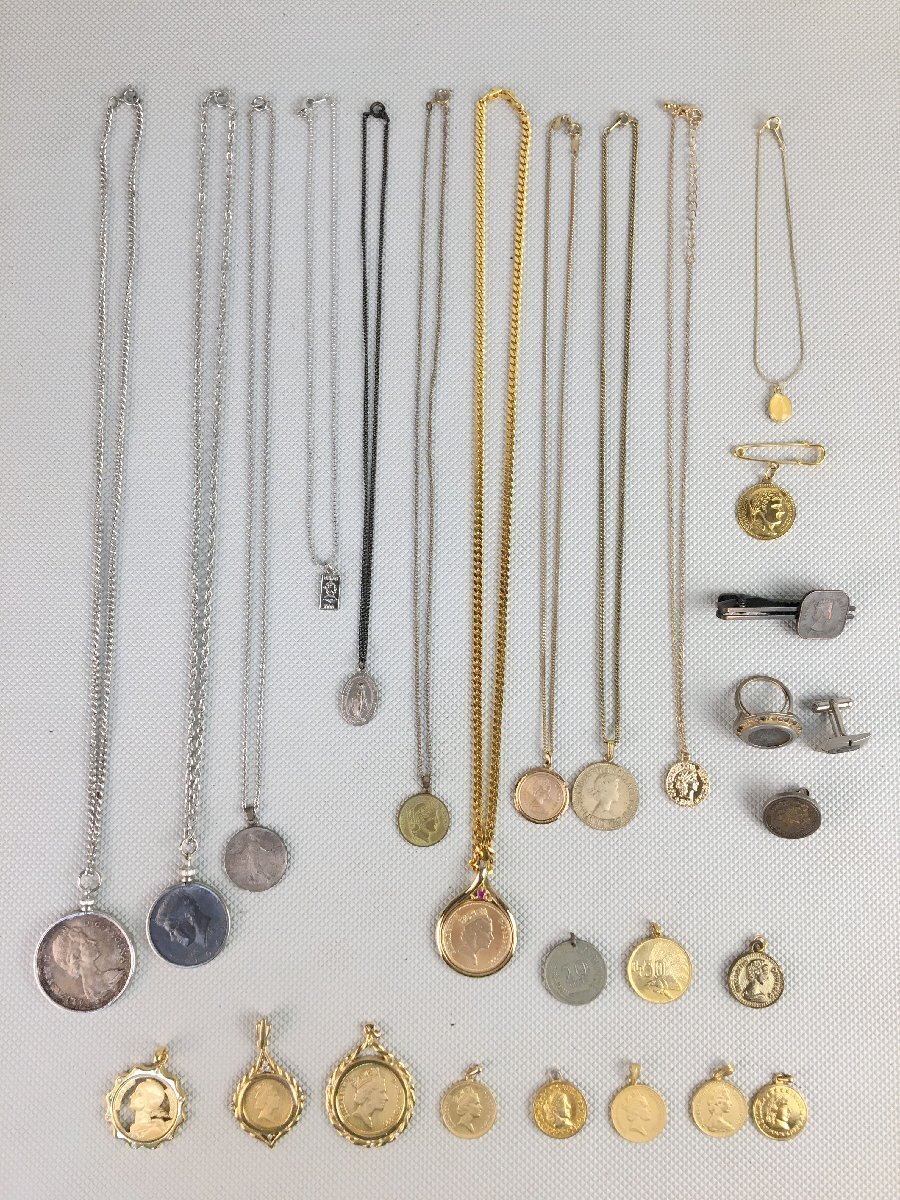 - A12077◇金コイン アクセサリー 大量 まとめ 約250g ネックレス ペンダント ペンダントトップ 等 18K5M K18GP 刻印あり【中古】241031