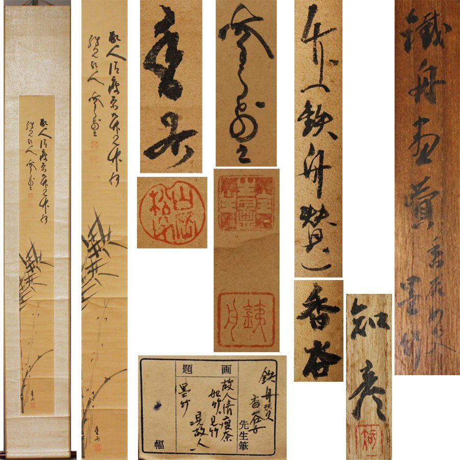 - 《源》【即決・送料無料】《初心だし》《幕末の三舟》山岡鉄舟 讃句 山岡松子(香谷) 画 親子合作「竹図」/堀江知彦書付箱付