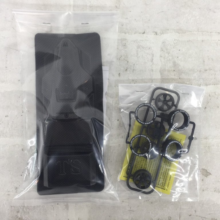 > ミニ四駆 タミヤ 15502 35周年 サンダーショット クリヤーボディセット カーボンパターン スーパーハードタイヤ&ホイール セット