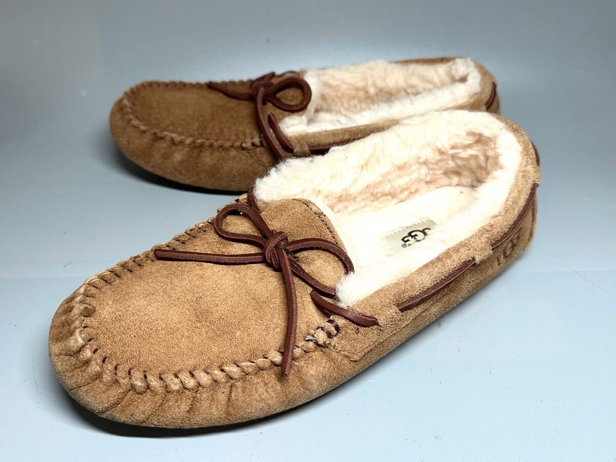 > 【即決】UGG 25cm モカシン レディース US8 ムートン デッキシューズ アグ 茶色 ブラウン スリッポン カジュアル シューズ くつ リボン 靴