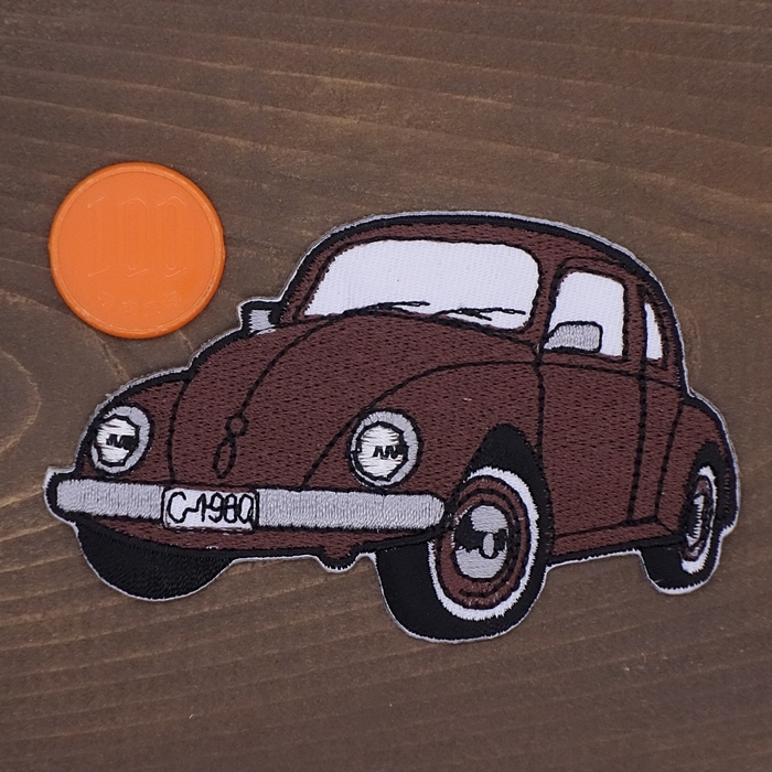 - 【送料無料】アイロンワッペン フォルクスワーゲン ブラウン ワーゲン ビートル VOLKSWAGEN アップリケ