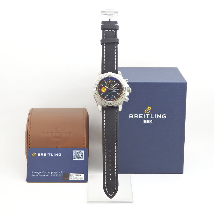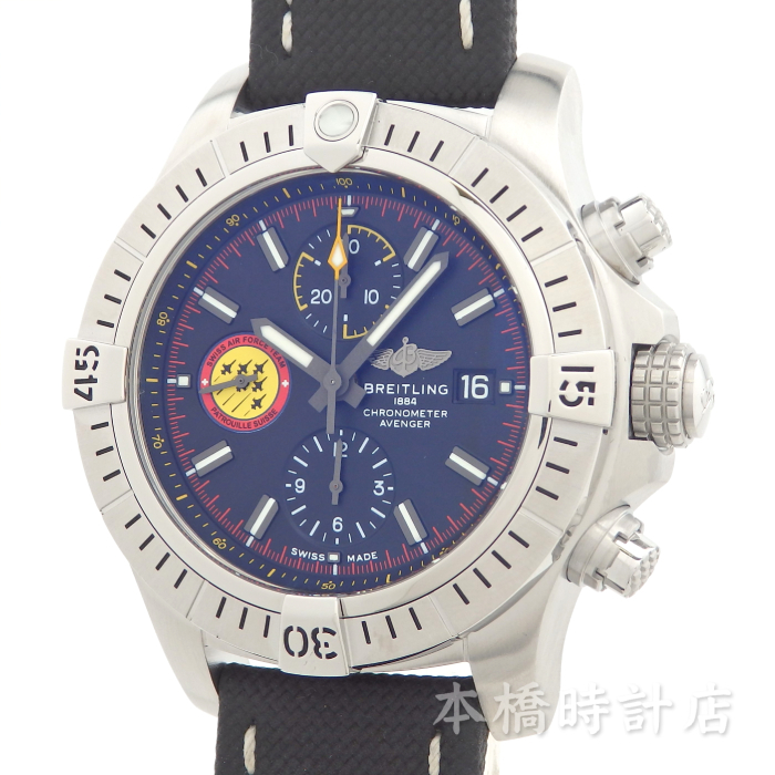 - 【中古】ブライトリング BREITLING A13317 アベンジャークロノ スイスエアフォースチーム550本限定 箱・正規保証書(2020年12月)付