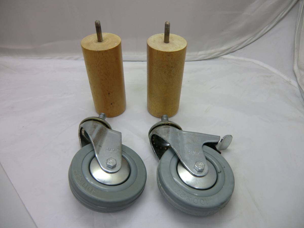 - ★★ベット、ソファー等の脚 木製 4本セット キャスター付★⑤★★【管理:一般】