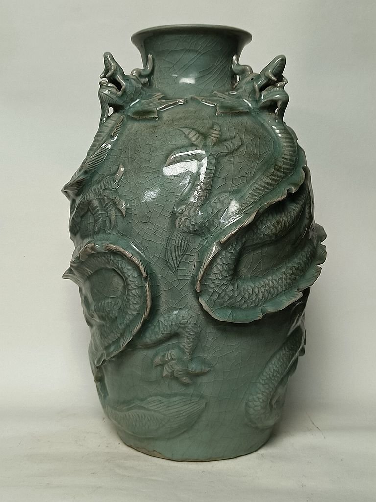 - ▼渡鶴羽▼P084コレクター放出 朝鮮古美術 高麗磁 李朝時代 古高麗 高麗青磁龍紋大壺