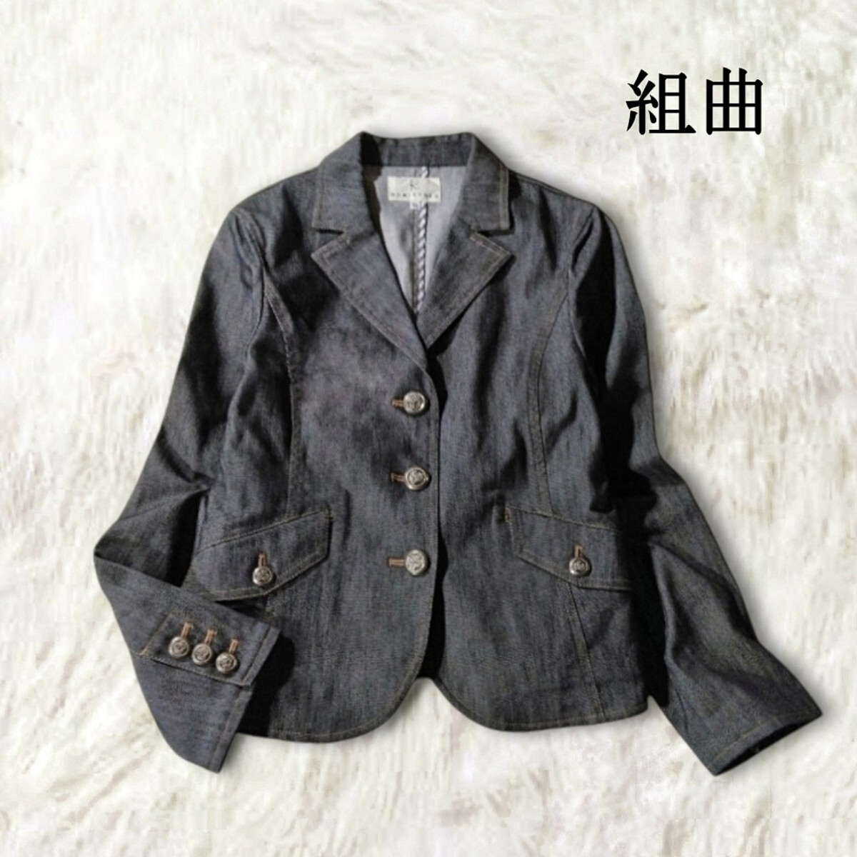 > 49 【組曲】 クミキョク デニムジャケット テーラードジャケット アウター TL 150 160 グレー フォーマル セレモニー 子供 キッズ 女の子