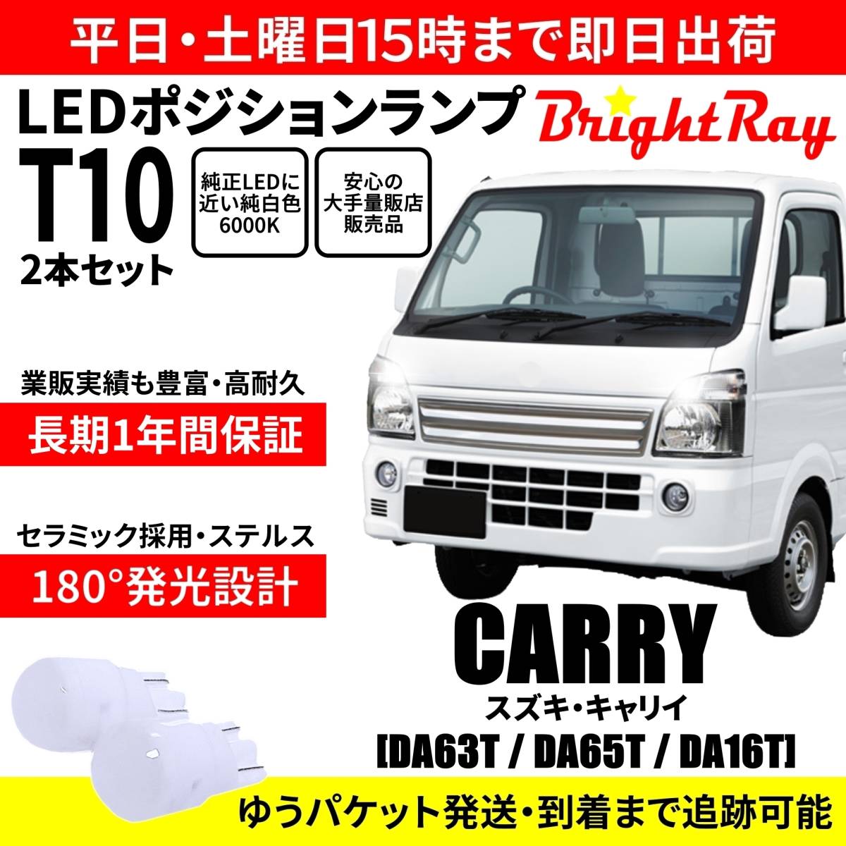 - 送料無料 1年保証 スズキ キャリイ DA63T DA65T DA16T キャリー BrightRay T10 LED バルブ ポジションランプ 車幅灯 2本セット 車検対応