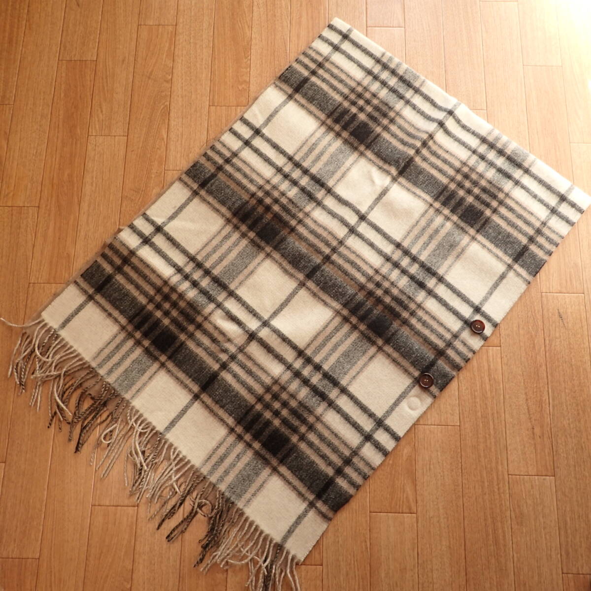 - @@ラスト1 未使用 ソレイユ チェック柄 ストール ボレロ ウール100% ベージュ系 膝掛け 肩掛け QVC