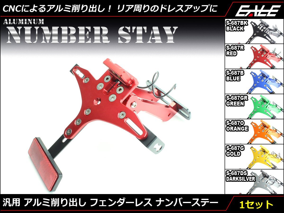 > 汎用 アルミ削り出し フェンダーレス ナンバーステー 角度調整可 ウインカーステー/ライセンスランプ/リフレクター付き ゴールド S-687G