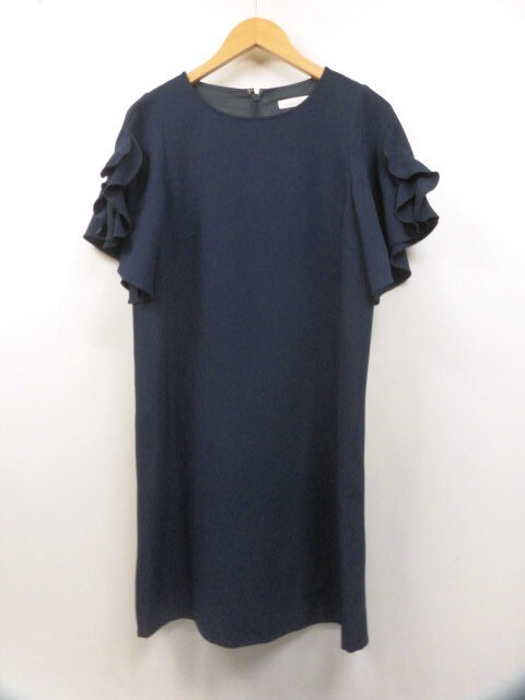 > AG by aquagirl エージーバイアクアガール 半袖 フリル袖 膝丈 ワンピース ひざ丈 無地 シンプル ネイビー 紺 レディース Sサイズ