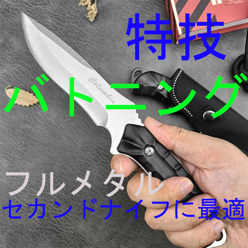 - 【刃厚4mm】高硬度フルメタルバト二ングナイフ 特殊アルミ合金ハンドル ガンガン使えます B