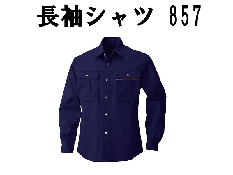 > 新品 Mサイズ 火に強い 日本製素材 857 長袖シャツ ビッグボーン 秋冬 作業服 作業着 綿100% アーリーバード 紺色 ネイビー 上着 作業