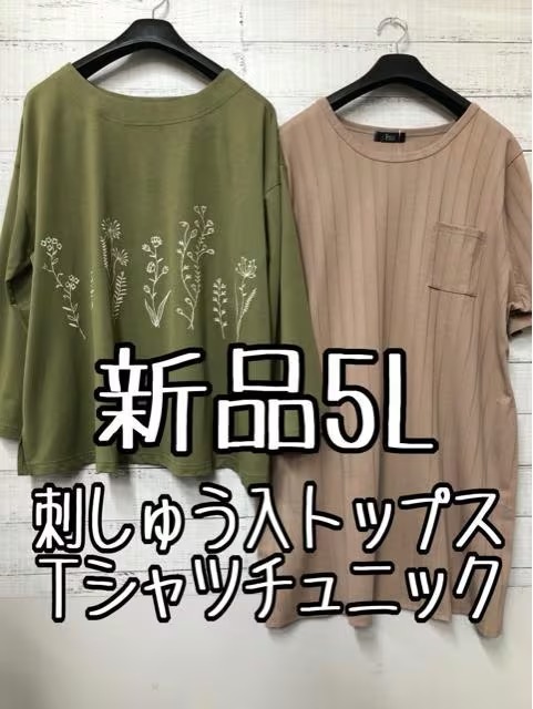 - 新品☆5L♪刺しゅう入長袖トップス&半袖Tシャツチュニック♪☆s644