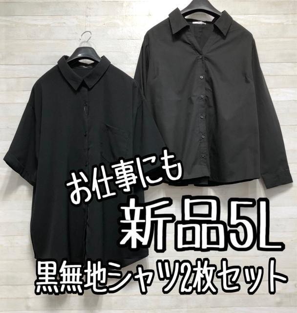 - 新品☆5L黒系無地♪長そで&半そでシャツ2枚セット♪お仕事にも☆f627