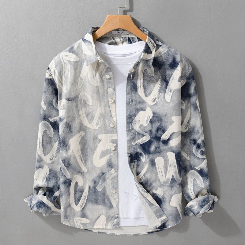> ☆新品 長袖シャツ シャツジャケット 極美品 メンズ 総柄 ヴィンテージ 春秋冬 トップス カジュアルシャツ ブルー M