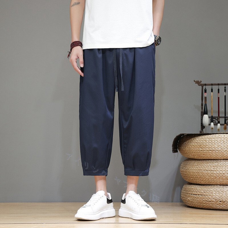 - ☆新品 クロップドパンツ 夏涼しい メンズ カジュアルパンツ ショートパンツ ハーレムパンツ【-2-AK07】紺色 5XL選択