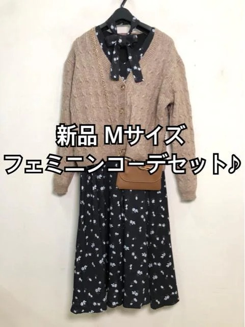 - 新品☆Mフェミニンコーデセット花柄ワンピ・カーデ・ポーチy102